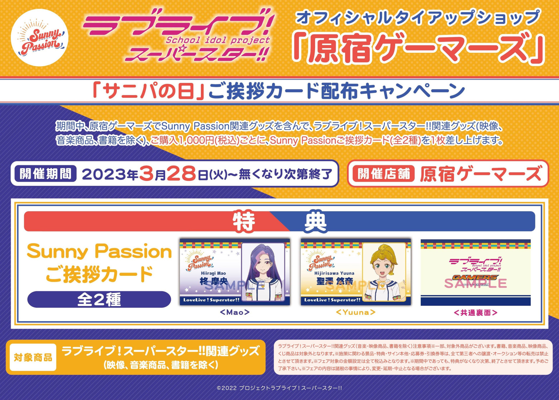 原宿ゲーマーズにて、本日より「Sunny Passion」応援企画を開催いたします。