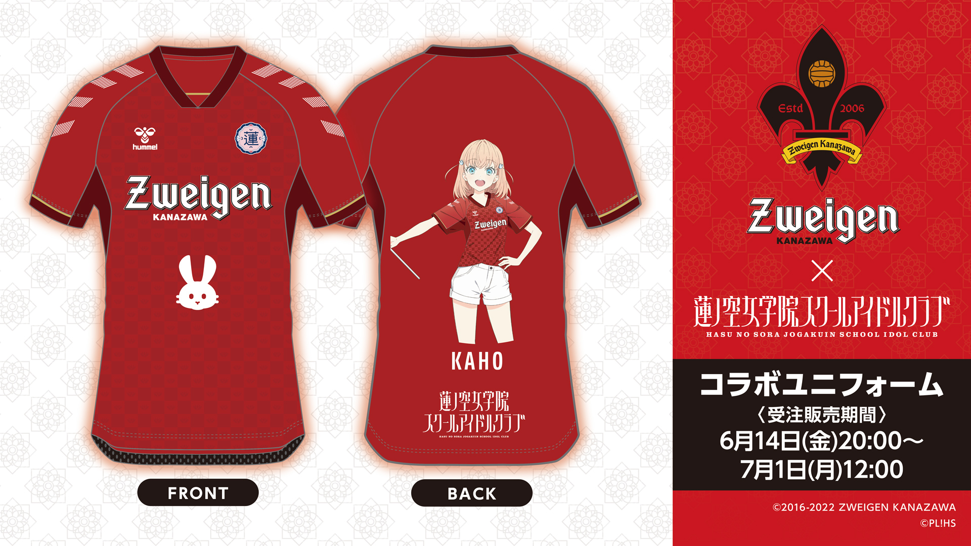「ツエーゲン金沢×ラブライブ!蓮ノ空スクールアイドルクラブコラボユニフォーム(全9種)」は7月1日(月)12:00まで受注受付中!詳細はコラボユニフォームのニュースリリースをご確認ください!